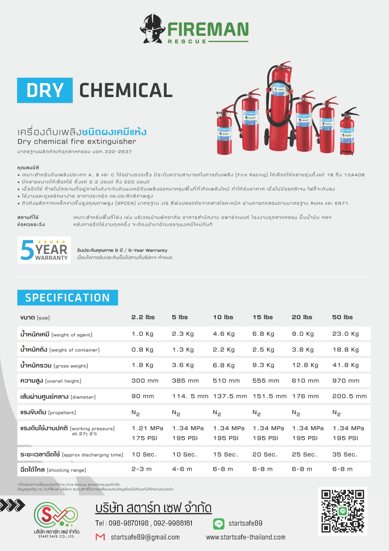 เหมาะสำหรับดับเพลิงประเภท A , B และ C ได้อย่างรวดเร็ว